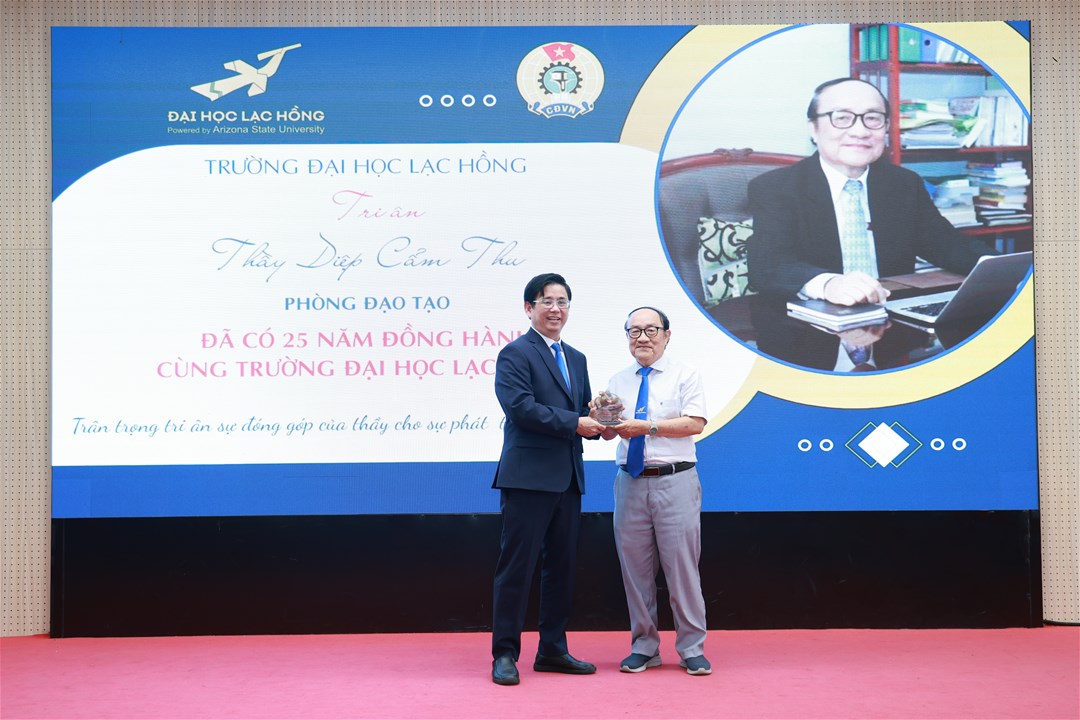 Trong khuôn khổ Hội nghị Tổng kết hoạt động Công đoàn năm học 2024 – 2025, sáng ngày 26/12/2025, Công đoàn Trường Đại học Lạc Hồng đã tổ chức Lễ tri ân Nhà giáo, Người lao động (NGNLĐ) có nhiều năm đóng góp cho sự phát triển của Nhà trường.