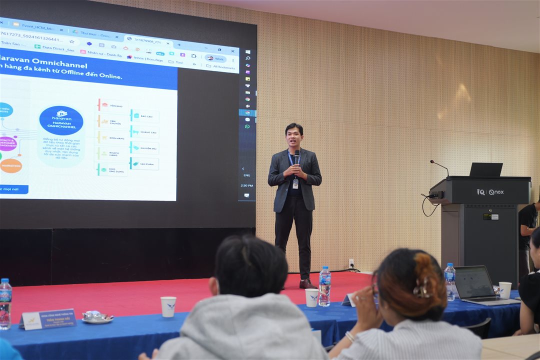 Diễn giả Nguyễn Toàn Sao, chuyên gia đào tạo đến từ Haravan, đã mang đến những câu chuyện thực tế, bài học kinh nghiệm và xu hướng ứng dụng công nghệ trong thương mại điện tử tại Việt Nam.