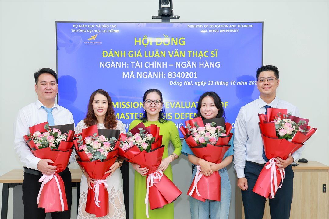 Ngày 23 tháng 10 năm 2025, tại phòng B107 (Phòng tiến sĩ) cơ sở 1 của Trường Đại học Lạc Hồng (LHU), Hội đồng đánh giá luận văn thạc sĩ chuyên ngành Tài chính - Ngân hàng đã tổ chức buổi bảo vệ luận văn cho 05 học viên. Buổi lễ diễn ra trong không khí trang trọng và đầy tính học thuật, với sự tham gia của các nhà khoa học, giảng viên uy tín và các chuyên gia đầu ngành.
