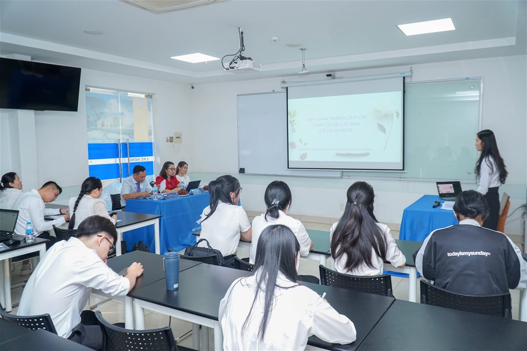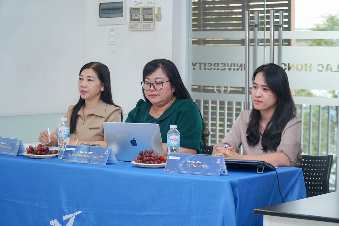 On the afternoon of November 15, 2025, at Campus 1 of Lac Hong University, the Faculty of Finance and Accounting convened the Thesis Evaluation Council for students of the 2024 regular university bridging program, including classes 24KT401, 24KT502, 24NH401, 24NH502, and 24LG501, together with students completing their internship resubmission requirements. This activity plays an important role in reviewing the learning process, assessing students’ research competencies, and recognizing their academic efforts prior to graduation.