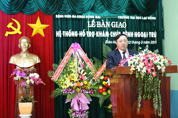 Dated 12 March 2011, at Dong Nai Polyclinic Hospital, the handover ceremony of the software "Outpatient Medical Treatment” took place. Attending the ceremony were Mr. Tran Huong – Vice Director of Representative Office of the southern Ministry of Education and Training in Ho Chi Minh, Ms.Vu Thi Dinh – Vice Chairman of public health Union, Dr. Tran Hanh - Rector of Lac Hong University, Dr. Phan Huy Anh Vu - Director of Dong Nai Polyclinic Hospital and representatives of the provincial colleges, departments and branches.
