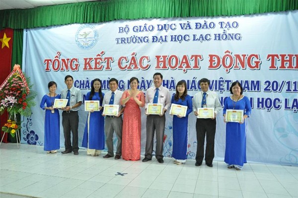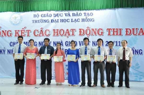On the occasion of the 30th anniversary of Vietnamese Teachers’ Day (November 20, 1982 – November 20, 2012), a meeting was held on November 19, 2012 at A301 to sum up activities and to honor Teachers for their outstanding achievements by the Trade Union Executive Committee in cooperation with chapters. Earlier, a series of activities have been held in Lac Hong University to celebrate the Vietnamese Teachers’ Day and and mark the 15th founding anniversary of Lac Hong University.