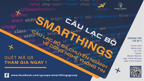 Faculty of Information Technology, LHU has just established the Smart Things Club with the aim to faciliate students' knowledge exchange and mutual learning. The club also desires all members to have experience with real projects. The main goal of the club is to make each member become dynamic, inquisitive, experienced as well as be able to work in groups. The Smart Things club aims at IT students and lovers.